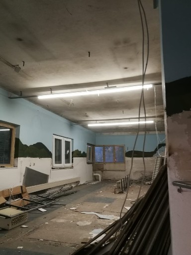 Es wurde die Zwischendecke entfernt und neu gestrichen um eine neue Beleuchtung einzubauen.